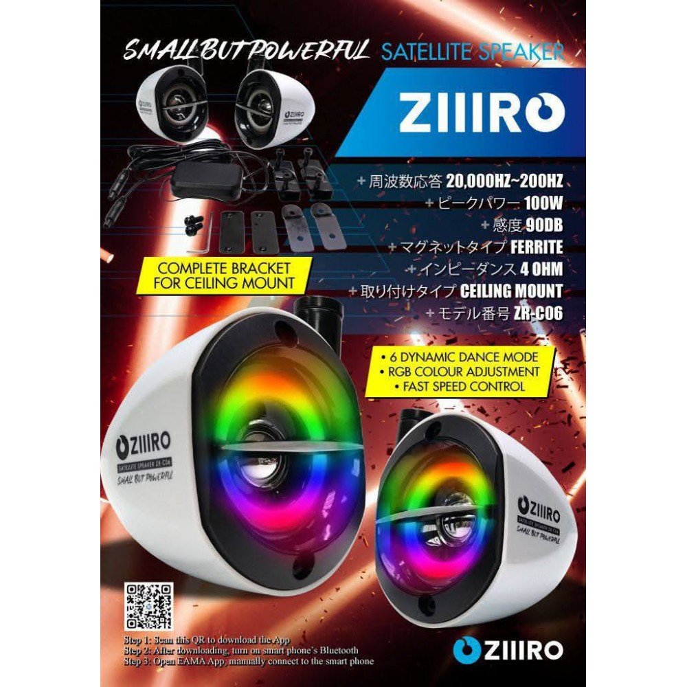 SATELLITE SPEAKER RGB LIGHT ILLUMINATION PHONE APPS CONTROL BRAND ZIIIRO